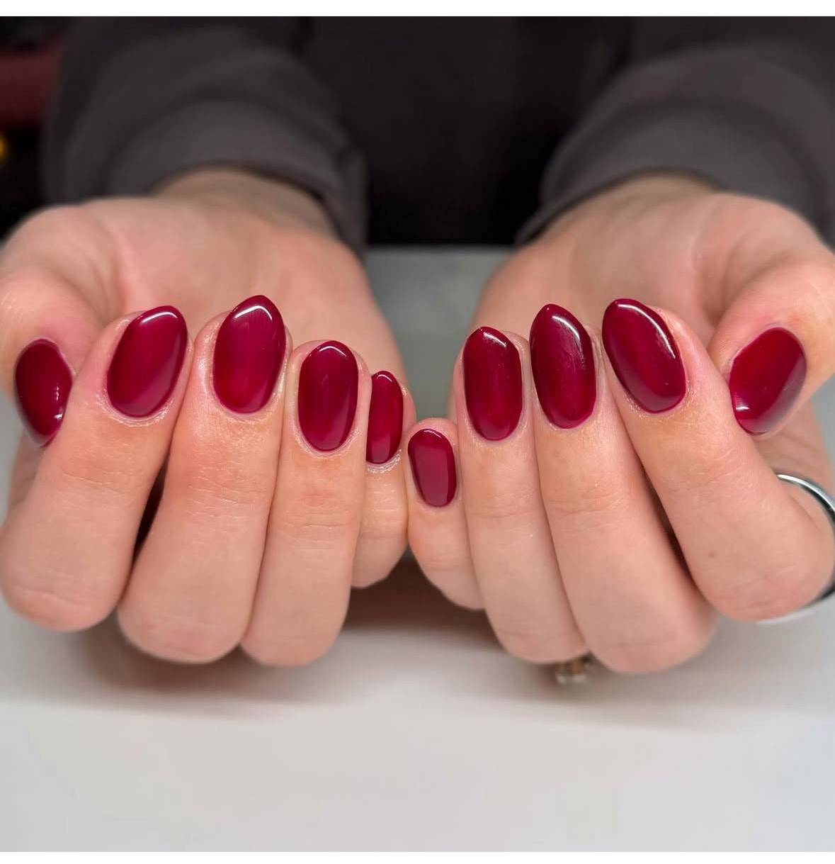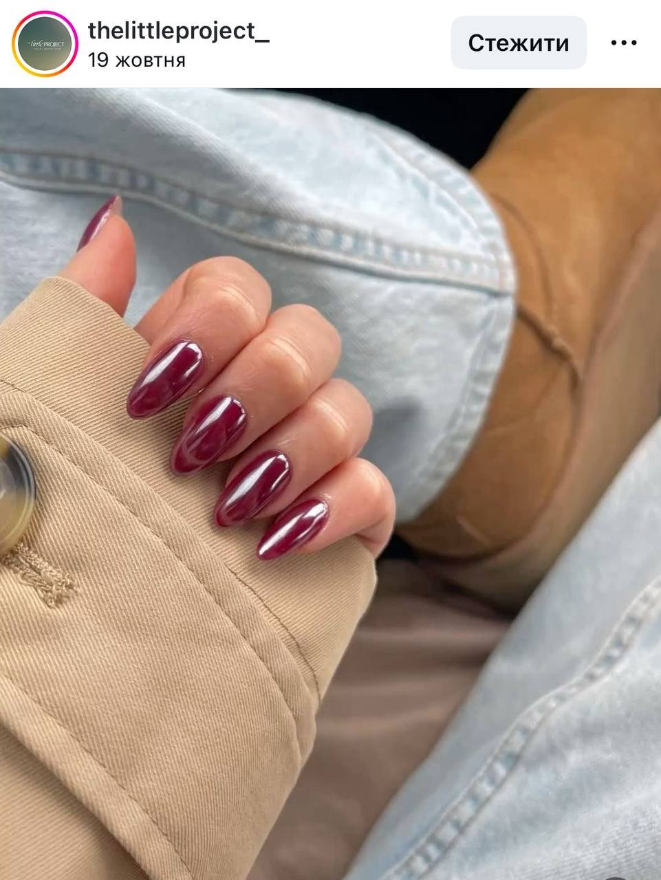 Nails-эксперты говорят, что ягодные тона были актуальны в течение осени, но будут оставаться на пике и зимой. Клюквенный маникюр – это особенно шикарный выбор. Этот цвет выглядит ухоженно на коротких квадратных ногтях и придает нотку драматичности элегантным миндальным кончикам. Он также идеально подходит для хромированного или матового покрытия.