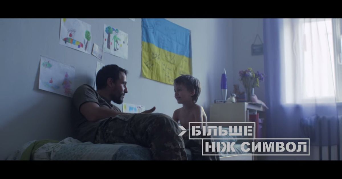 На видео в течение 30 секунд показывается, что означает национальный флаг для украинского военного, который после войны возвращается домой.