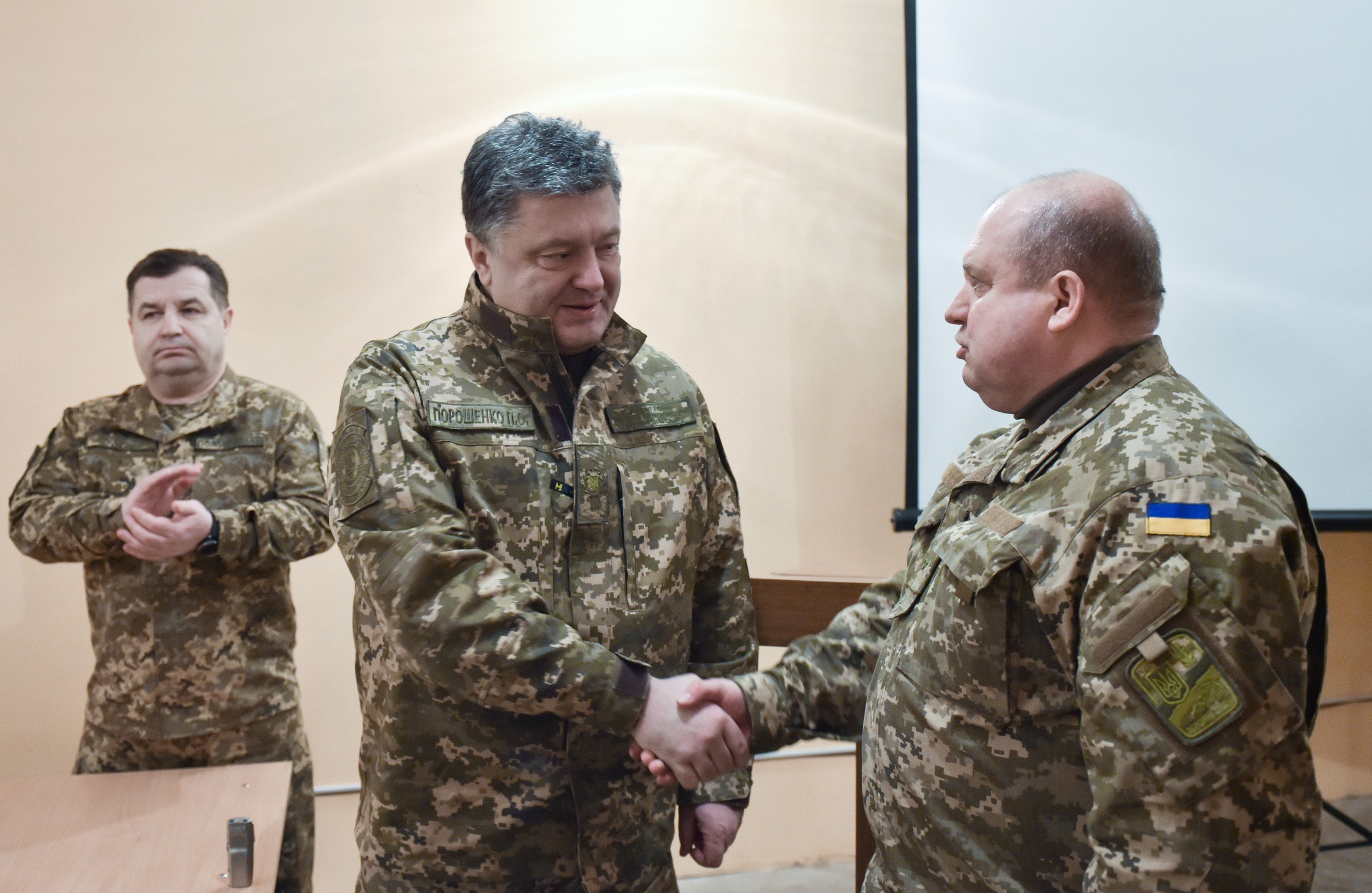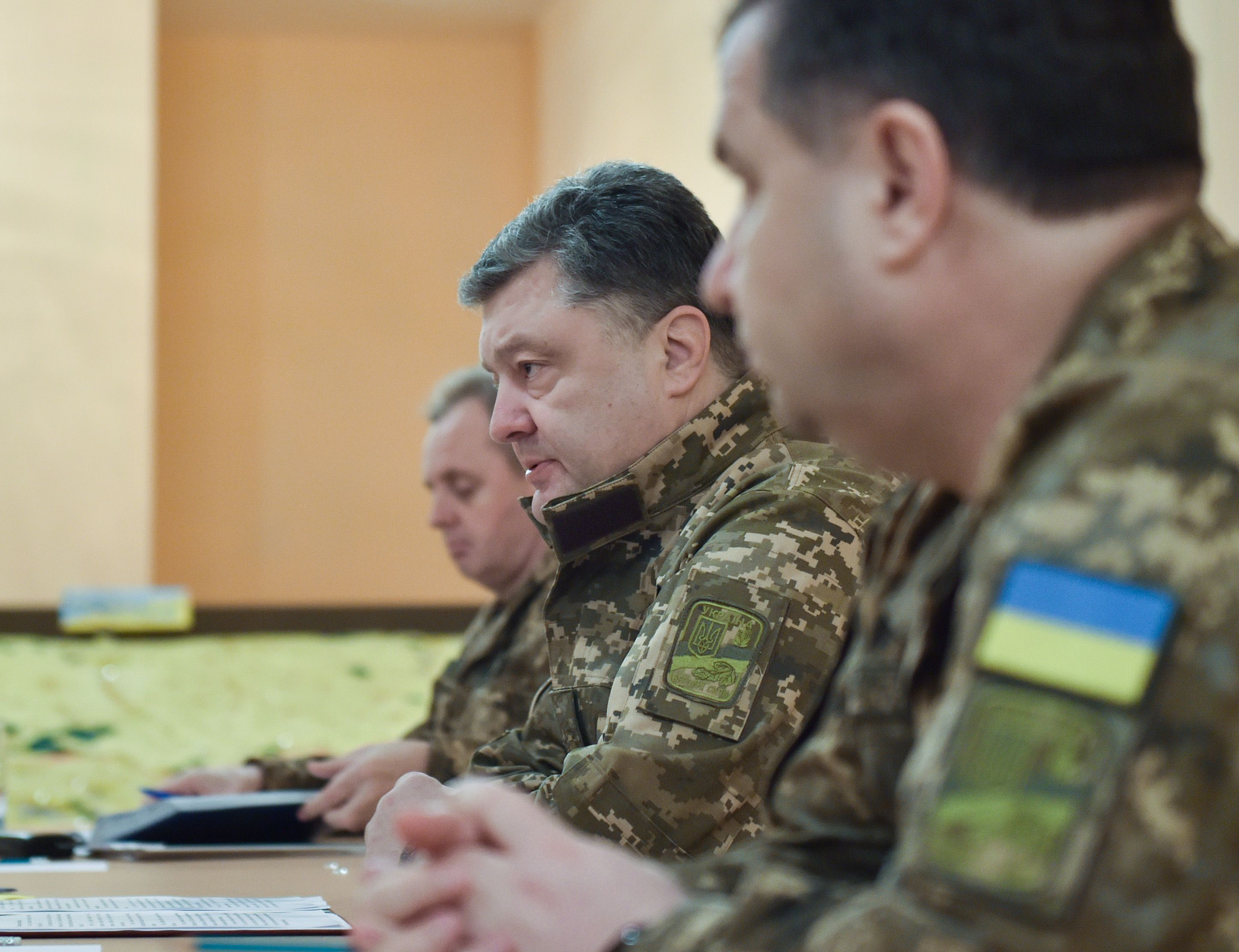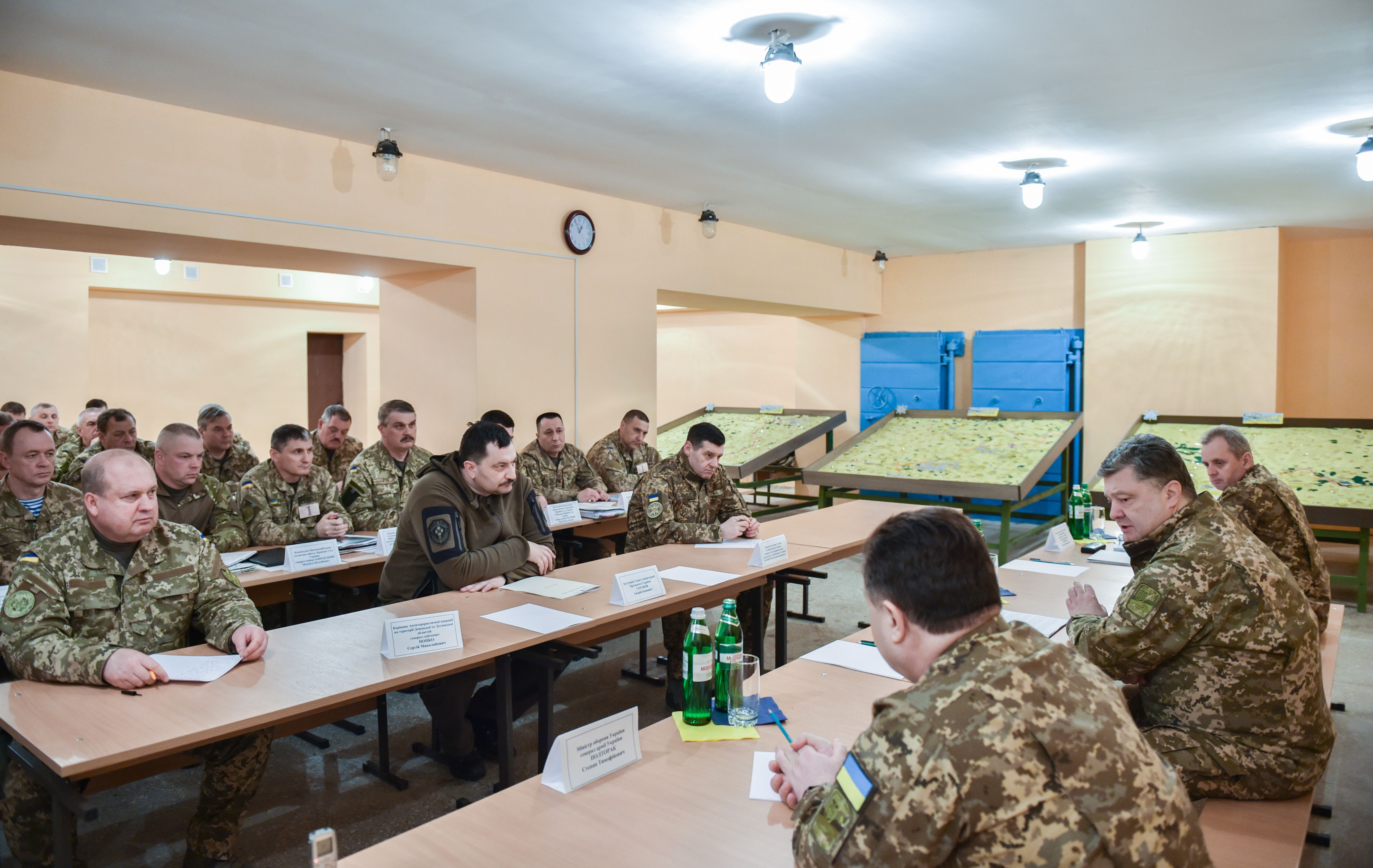 Глава государства встретился с руководящим составом штаба АТО и заслушал доклад об оперативной ситуации на фронте. Он назначил руководителя АТО Сергея Попко командующим Сухопутных войск Украины и представил его руководящему составу Центра управления в зоне антитеррористической операции.