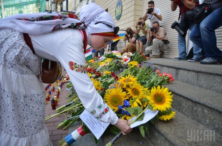 Украинцы вспоминают погибших у посольства Нидерландов. / © УНИАН