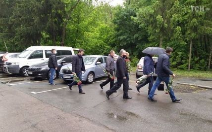 Как передает корреспондент ТСН, прощание происходит в ритуальном зале больницы "Феофания", на территорию заведения журналистов не пустили – ворота закрыты. Те, кто приехал на скорбную церемонию, оставляют машины за забором и идут внутрь пешком под ливнем.