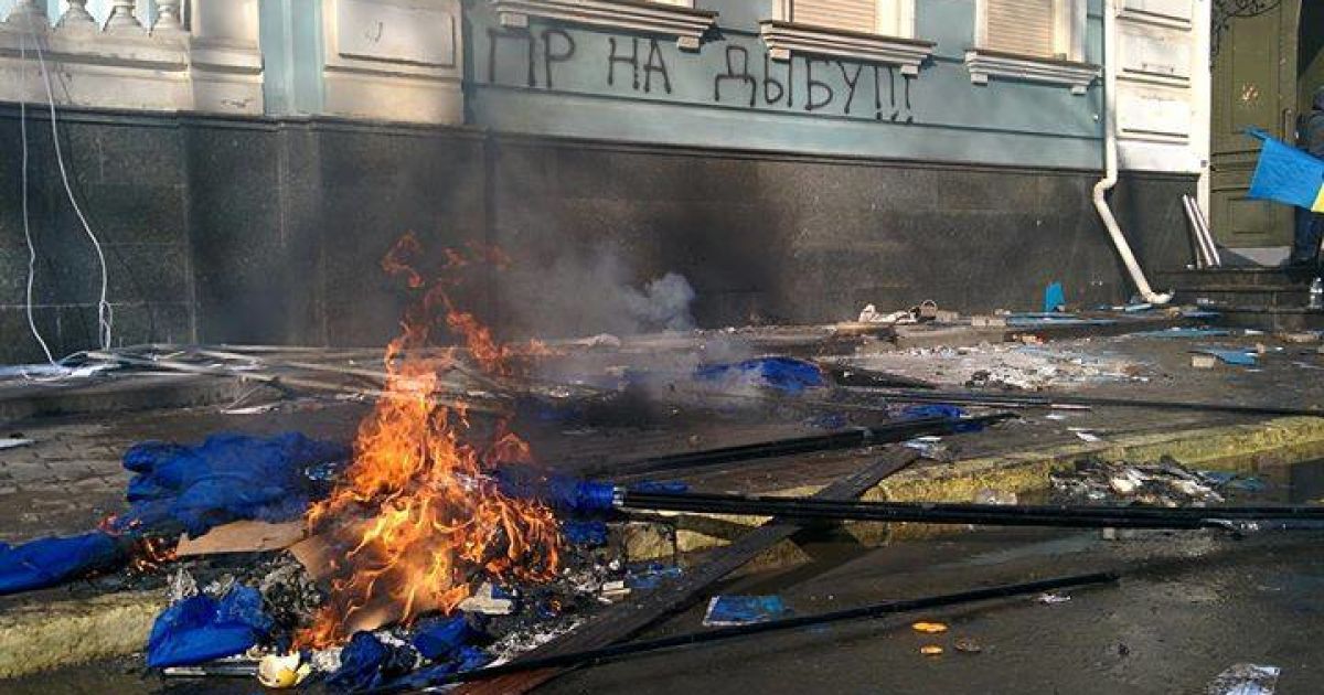 Офис Партии регионов сегодня сожгли и разгромили демонстранты / © Facebook/Віталій Уманець