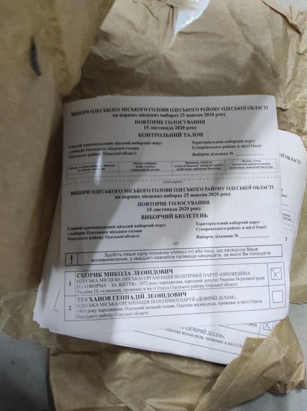 В офисе Дмитрия Голубова СБУ изъяла фальшивые бюллетени, которые готовились для вброса во втором туре выборов мэра Одессы, 15 ноября.