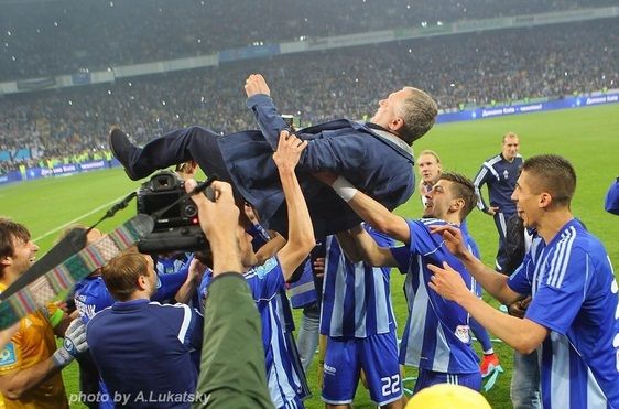 "Бело-синие" победили "Днепр" Днепропетровск на НСК "Олимпийский" со счетом 1:0, чего было достаточно для завоевания досрочного чемпионства.