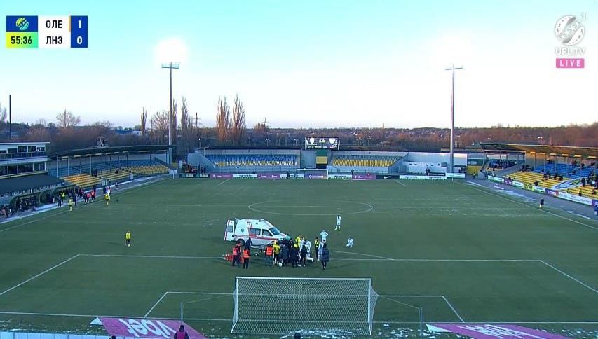 Когда игра возобновилась, на поле произошел очень неприятный инцидент. Защитник черкасского клуба Александр Каплиенко без всякого контакта с соперниками упал на газон и потерял сознание.