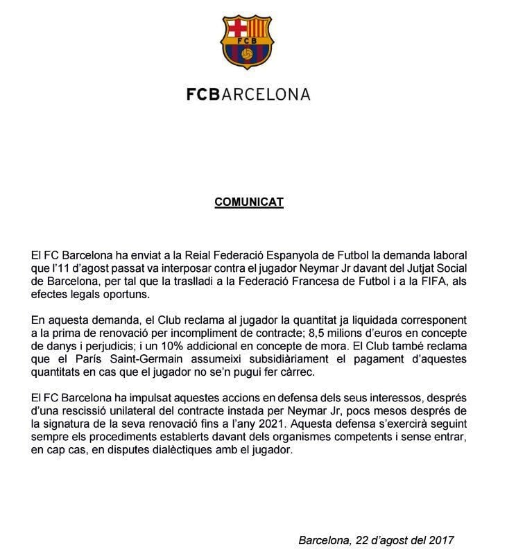 Следует отметить, что данный иск по этому вопросу, испанская команда подала еще 11-го августа, о чем сообщила испанскую и французскую футбольные федерации, а также ФИФА.