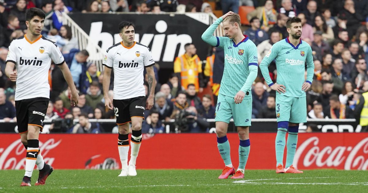 "Барселона" в поединке 21-го тура испанской Ла Лиги неожиданно уступила на выезде "Валенсии" - 0:2.