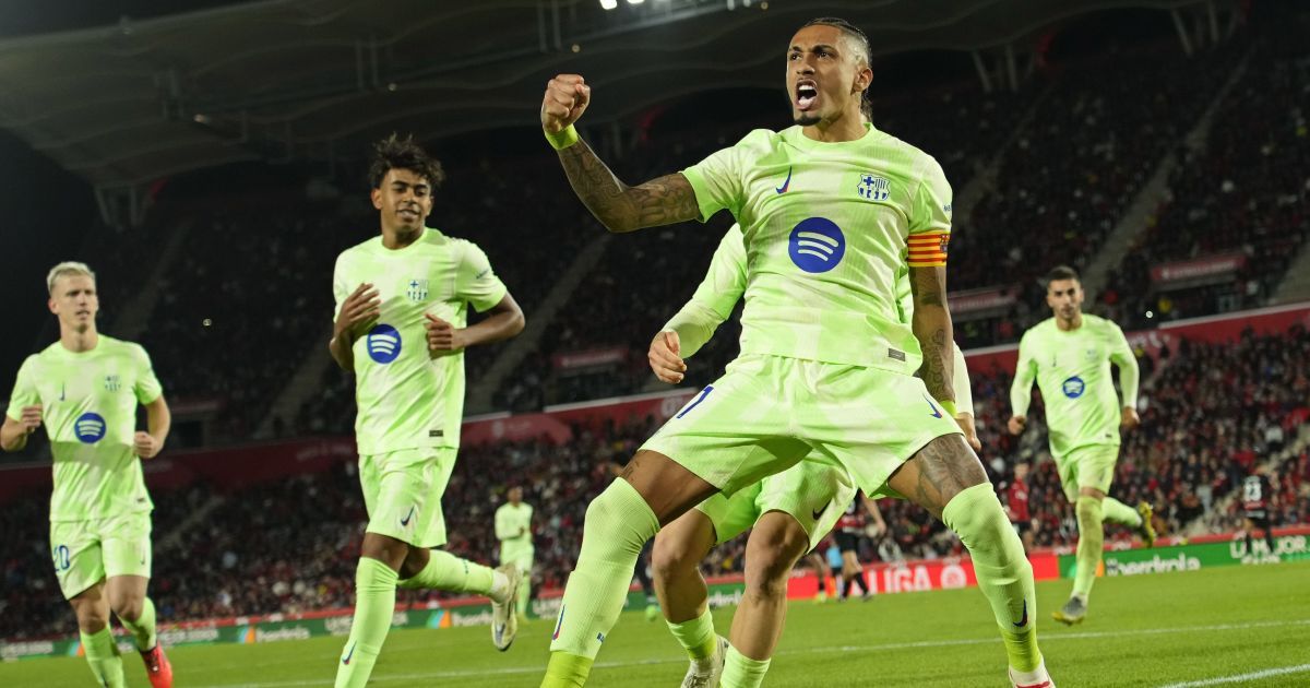А вот второй тайм прошел полностью по сценарию "сине-гранатовых". Рафинья на 56-й минуте реализовал пенальти, а затем на 74-й минуте оформил дубль, забив с передачи 17-летнего Ламина Ямаля.