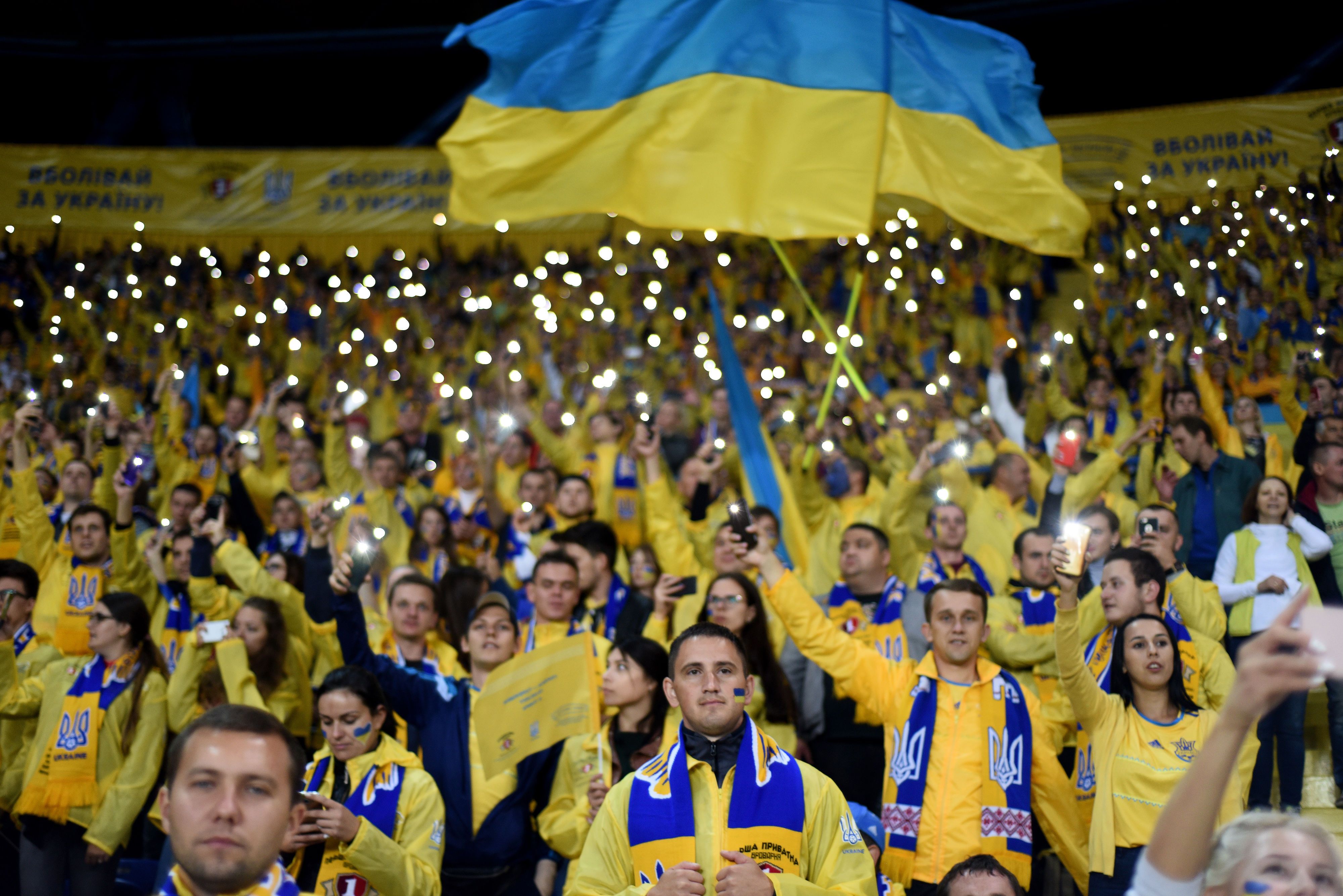 А уже на ОСК "Металлист" фанаты с фан-движением "Вірні збірній" "перекрасили" трибуны стадиона в желтый цвет.