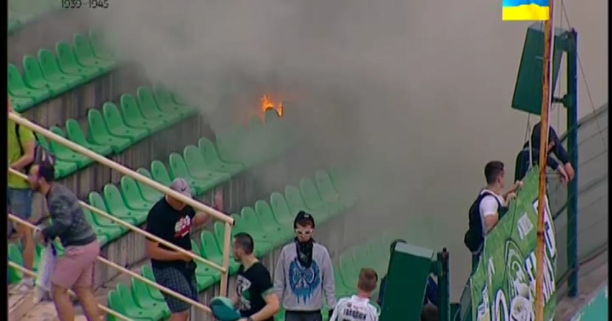 Болельщики "Карпат" подожгли свою трибуну в матче с "Черноморцем"