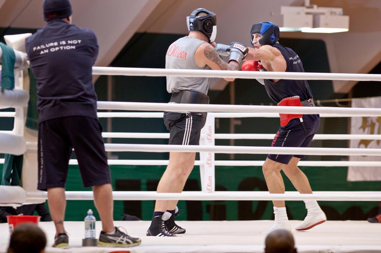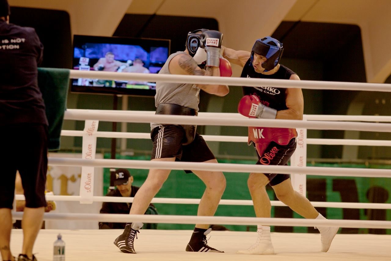 28 ноября Владимир Кличко будет защищать свои титулы в Дюссельдорфе на "Эсприт Арене" – в бою против Тайсона Фьюри. Ранее украинец провел "спарринг на лапах" со своим тренером Джонатеном Бэнксом, который также является действующим боксером супертяжелого дивизиона.