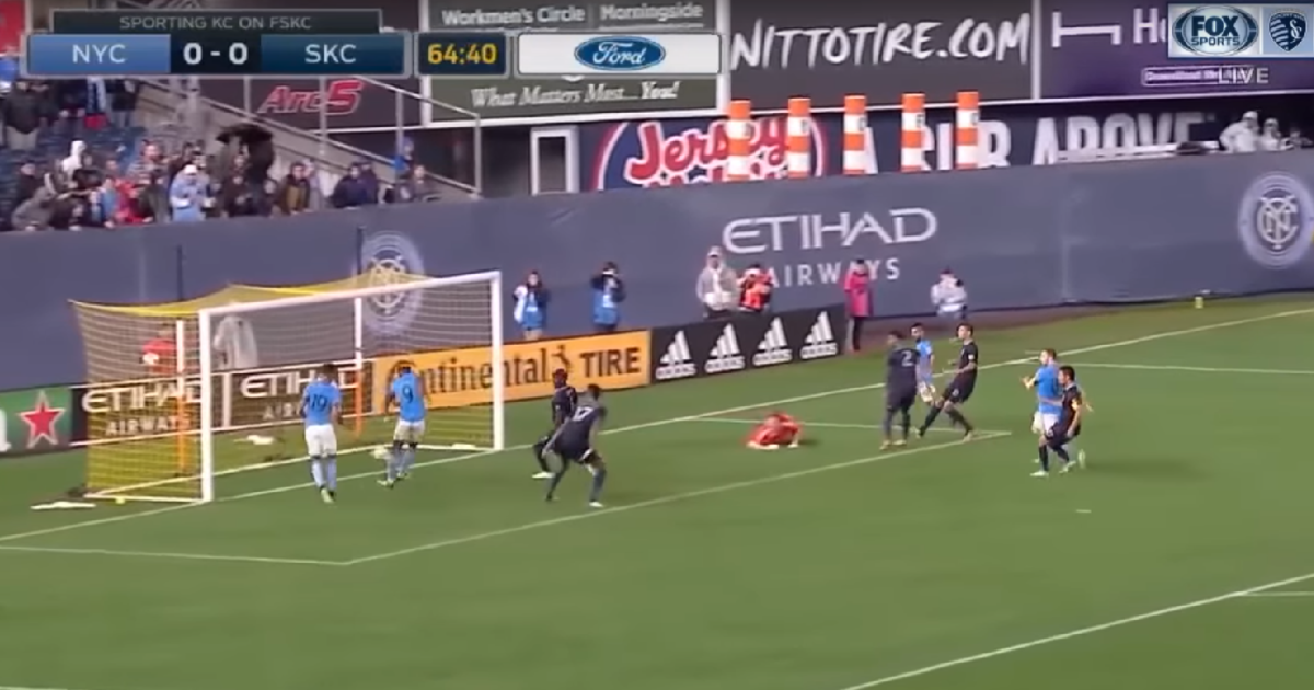 На 65-й минуте встречи форвард "Нью-Йорка" Шон Околи пробивал в пустые ворота с одного метра, однако, попал в партнера по команде, который также не сумел поразить цель соперника.