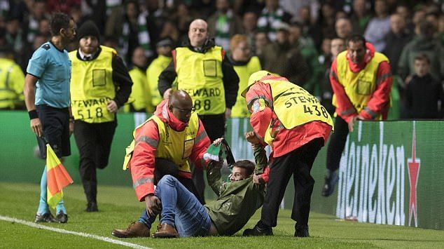 Отчаянный фанат "Селтика" так был раздражен текущим результатом, что хотел чуть ли не убить форварда гостей, который в этом противостоянии отметился забитым голом.