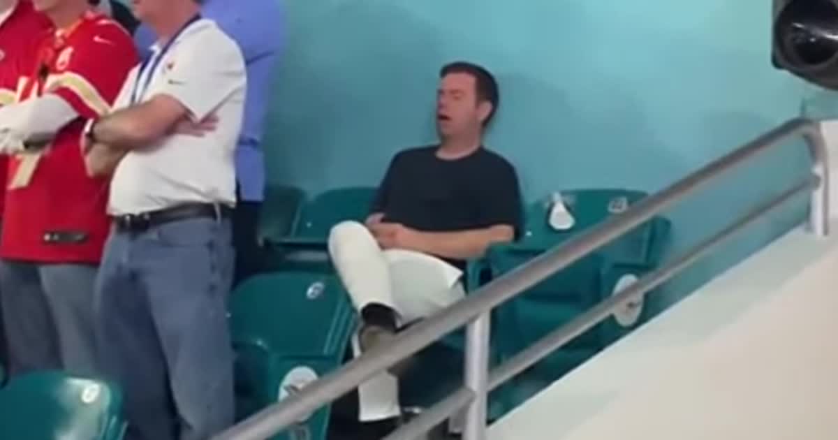 В соцсетях стало популярным видео с фанатом, который уснул в первой четверти финального матча по американскому футболу - Супербоул-2020.