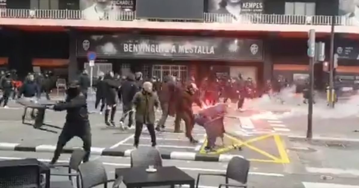 - 2 hours until Valencia & Barcelona face each other on the pitch at Mestalla, but it looks like the battle outside the stadium between the fans has already started. pic.twitter.com/MAn0piXSKs