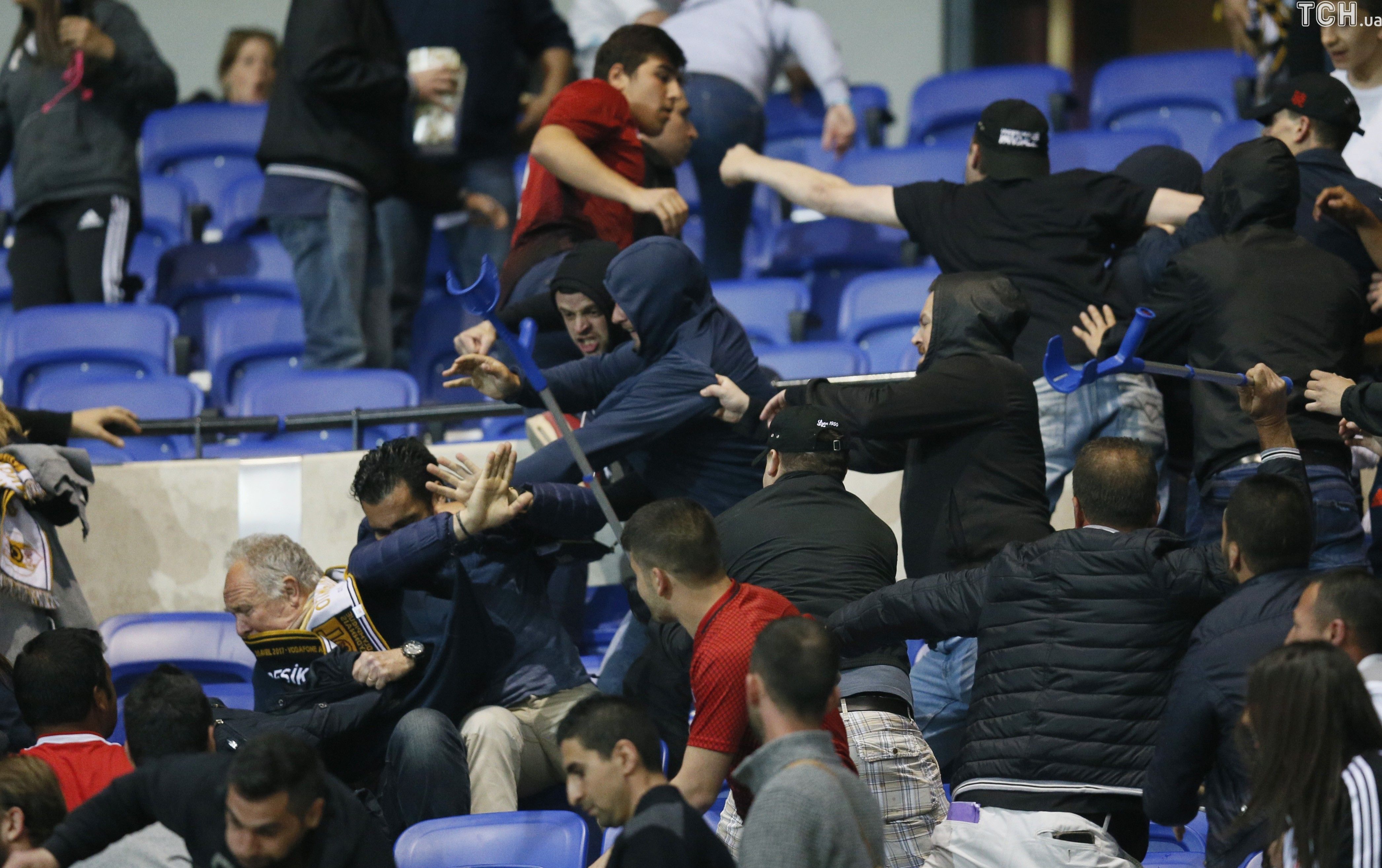 Фанаты "Бешикташа" устроили беспорядки на стадионе "Люмьер" перед началом матча четвертьфинала Лиги Европы против "Лиона".