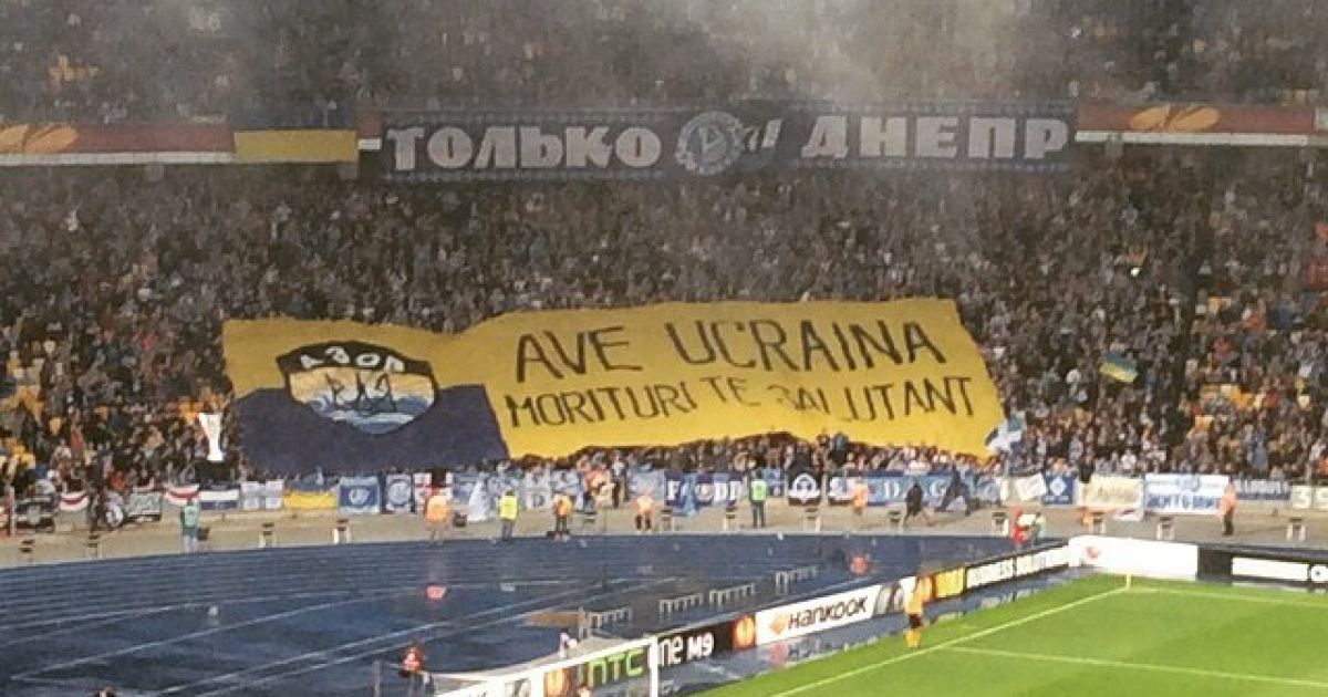 Фанаты "Днепра" на матче с "Наполи" вывесили огромный баннер полка "Азов"