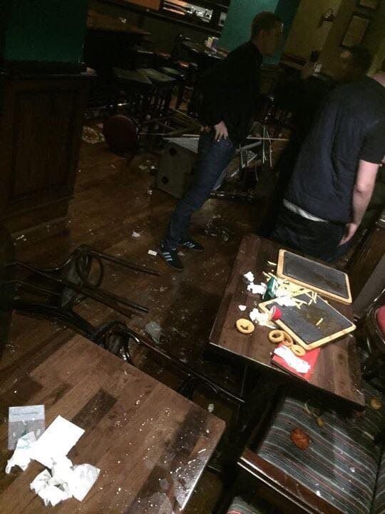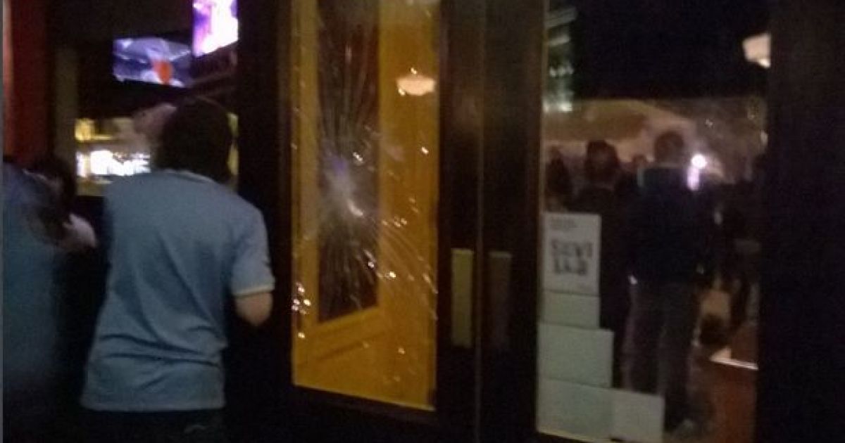 По словам свидетелей, английские фанаты сидели в одном из пабов, когда ворвались 50 человек в масках. Они разбили витрину и швыряли стулья.