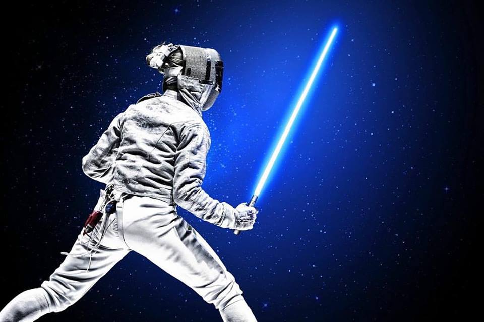 Фехтовальщица Харлан взяла в руки "световой меч" из "Звездных Войн"