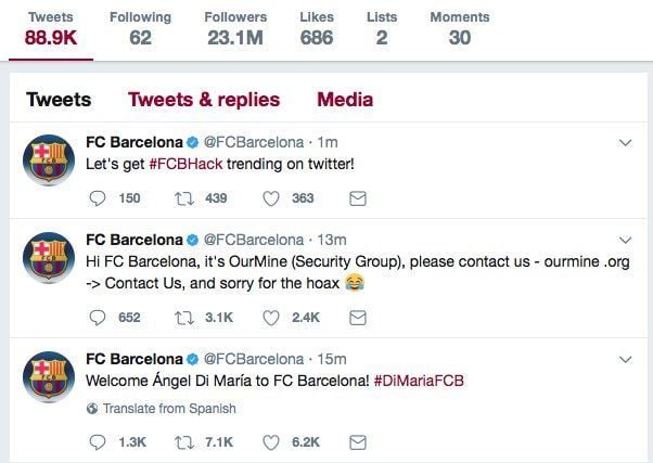 Правда, как оказалось позже, аккаунт "Барселоны" был взломан хакерами, благодаря которым и появилось это сообщение.