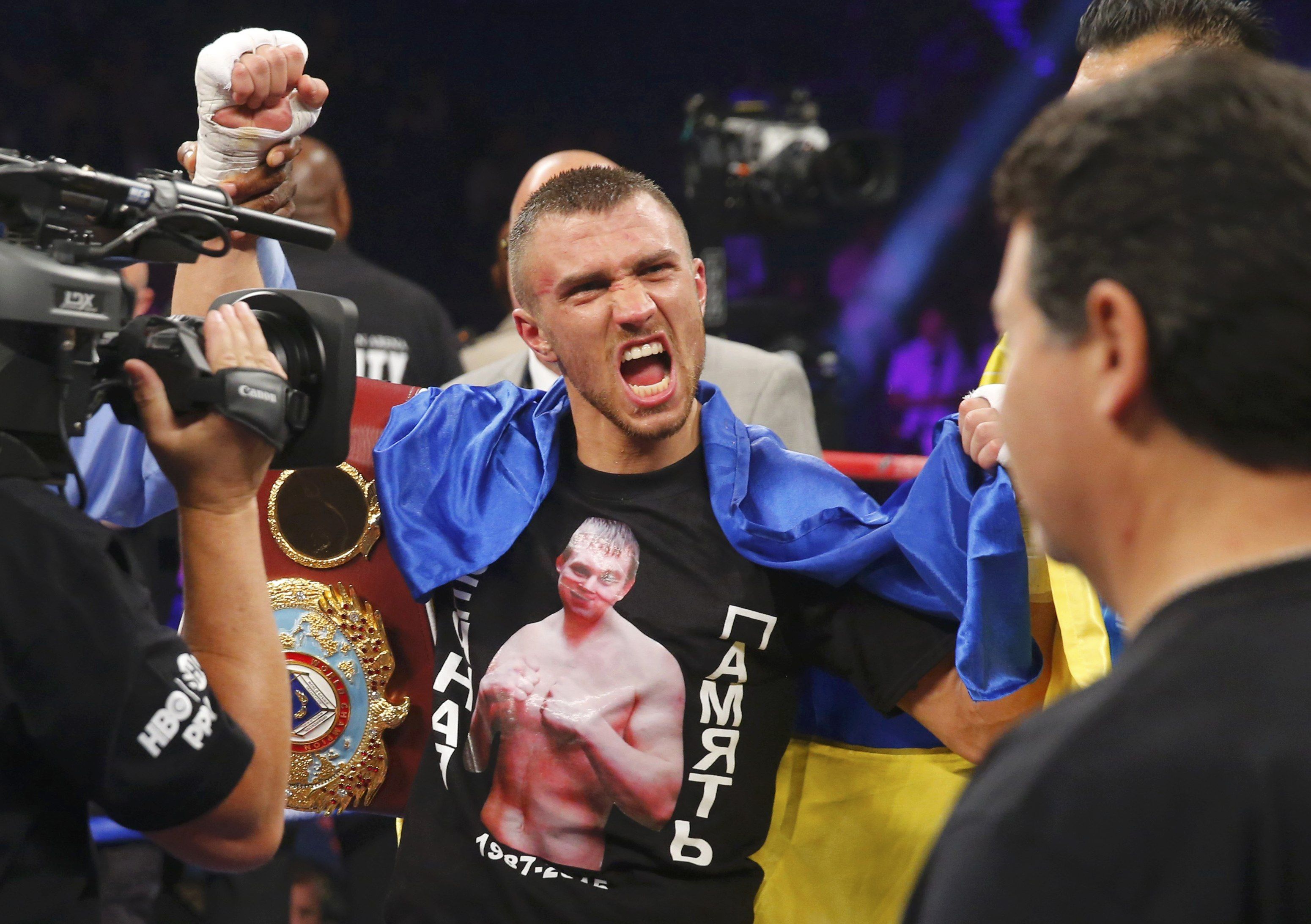 Эту победу Ломаченко посвятил погибшему в Одессе чемпиону Европы по таиландскому боксу, кикбоксеру Сергею Лащенко.