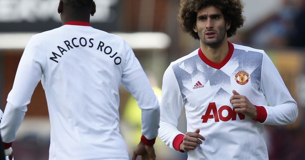 Manchester United players warming up in tops dedicated to injured duo Zlatan Ibrahimović and Marcos Rojo.