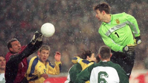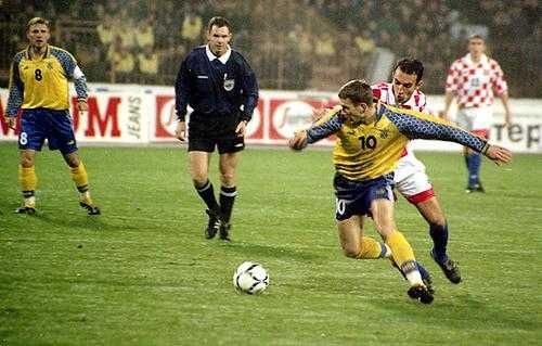 Впрочем, даже тогда украинцы, в составе которых блистала прежде всего пара форвардов Ребров-Шевченко, не считались аутсайдерами, и возможно бы поехали во Францию, если бы не ужасный арбитраж норвежца Педерсена во втором киевском поединке, который завершился вничью 1:1.