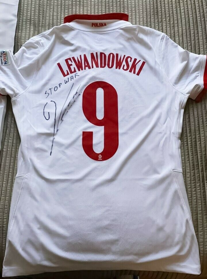 Форвард "Баварии" и сборной Польши Роберт Левандовски решил продать свою футболку национальной сборной с надписью Stop War на аукционе eBay.