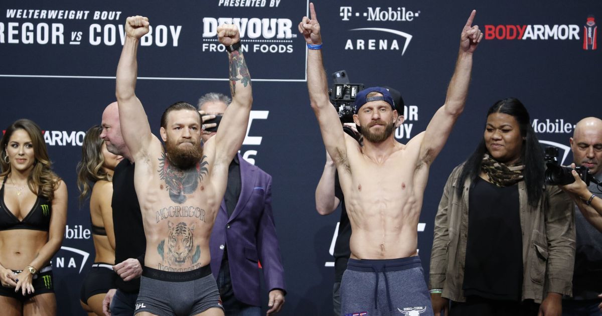 Звездный ирландец Конор Макгрегор и его соперник Дональд Серроне провели процедуру взвешивания перед битвой.