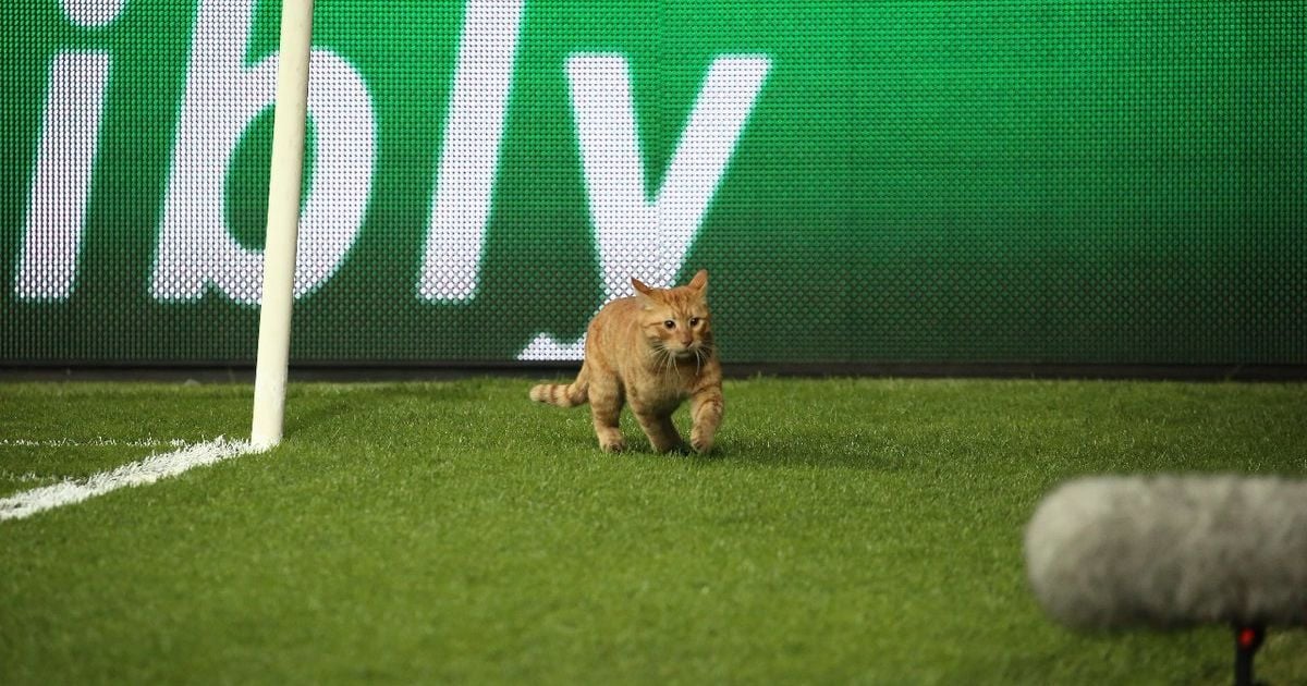 Матч Лиги чемпионов прервал рыжий кот, который прорвался на поле