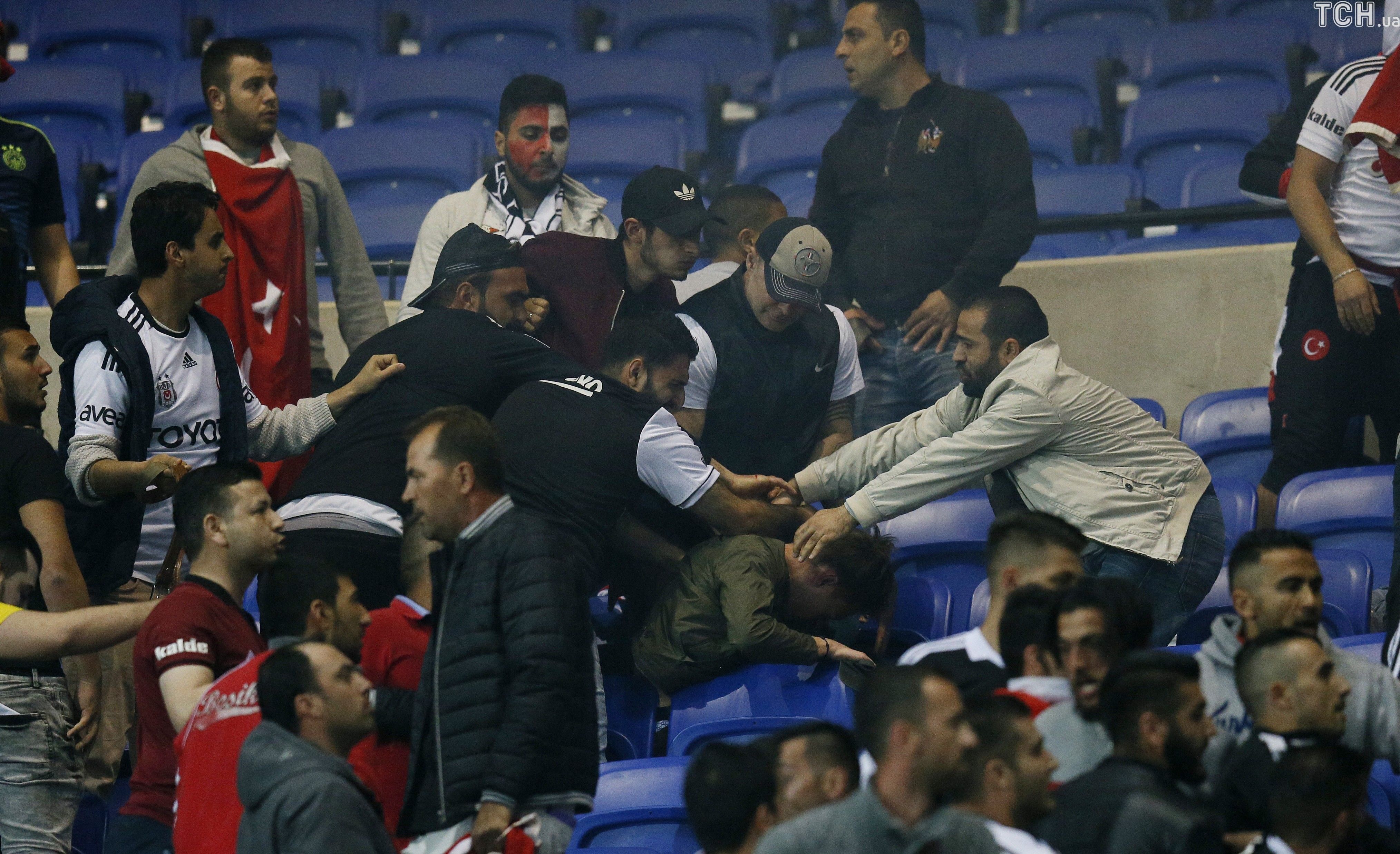 Игра была отложена на 45 минут после того, как турецкие болельщики напали на французских, а те выбежали на поле.