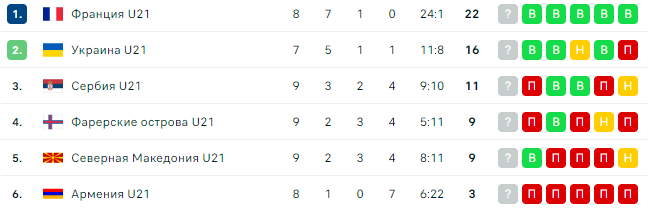 Сейчас турнирная таблица группы, где выступает Украина, выглядит так: