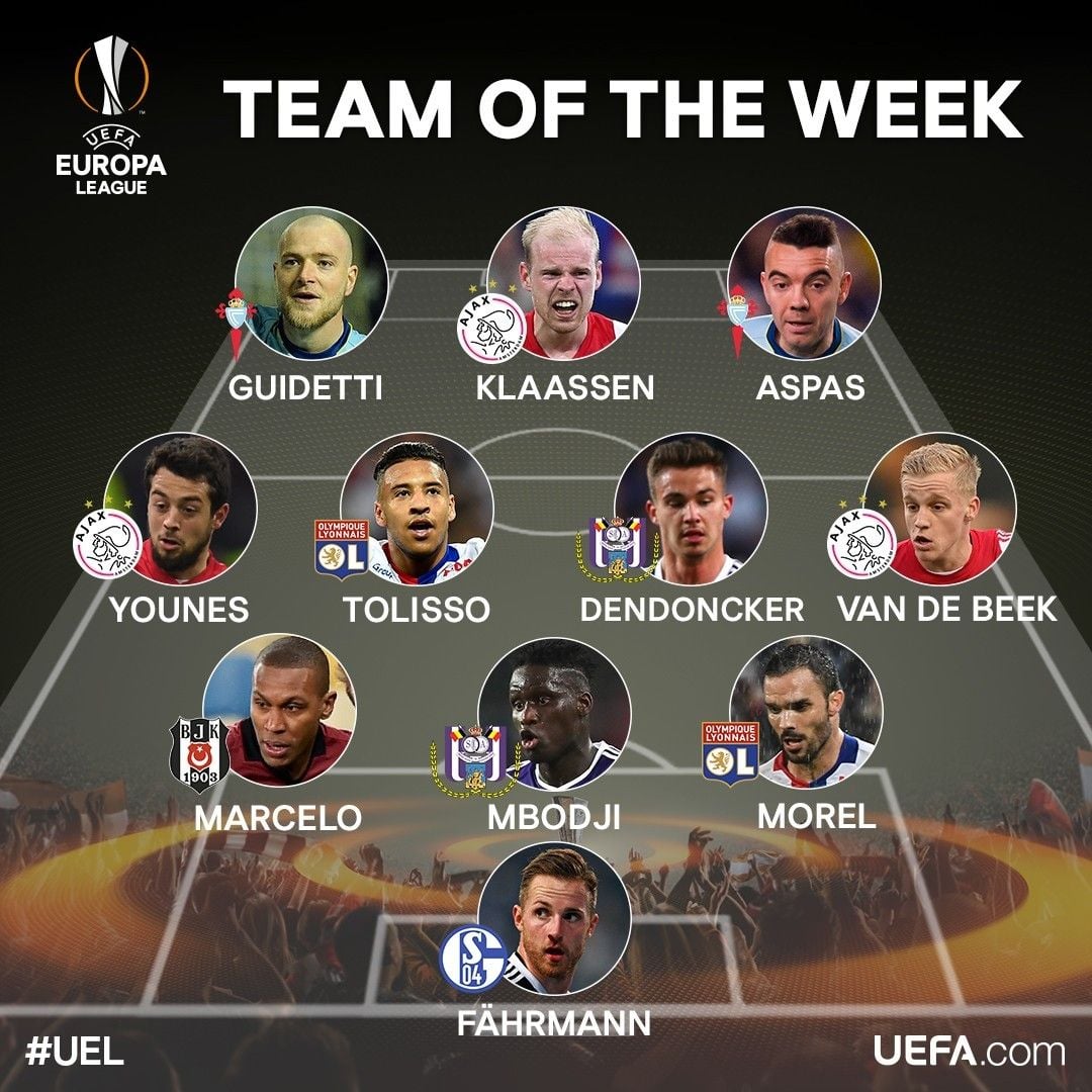Больше всего представителей в команде лучших у "Аякса" - 3 футболиста. Также по 2 игрока в сборную попали от "Сельты", "Лиона" и "Андерлехта".