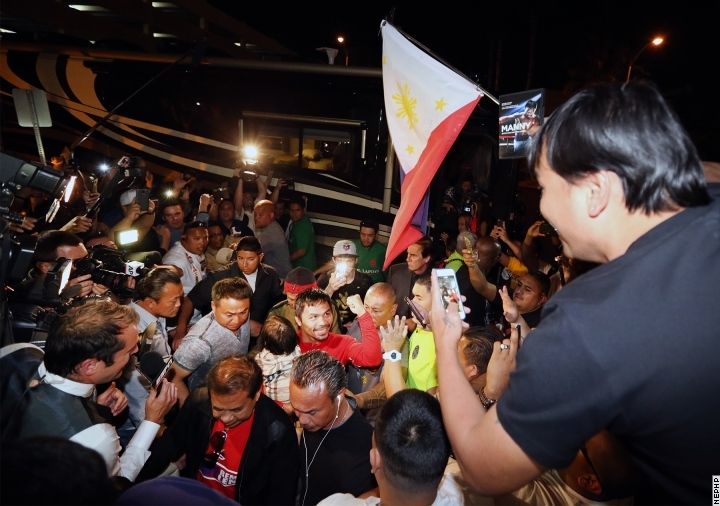 Легендарный филиппинский боксер Мэнни Пакьяо прибыл на место будущего супербоя с другой легендой - американцем Флойдом Мейвезером.