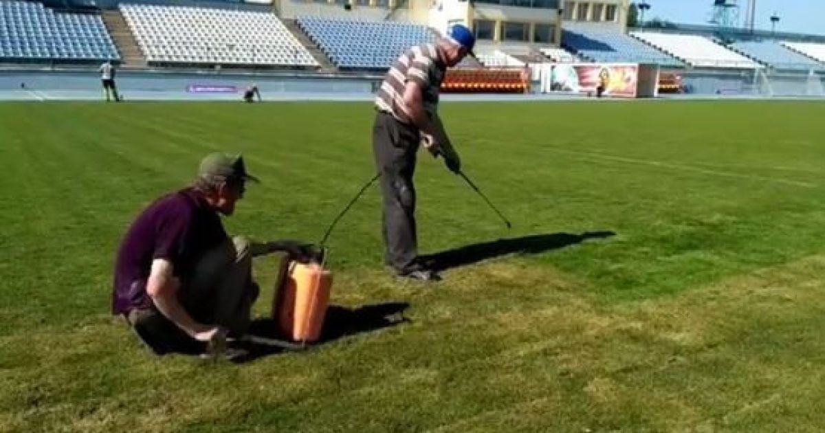 Перед матчем "Зирка" - "Днепр" газон "освежили" зеленой краской