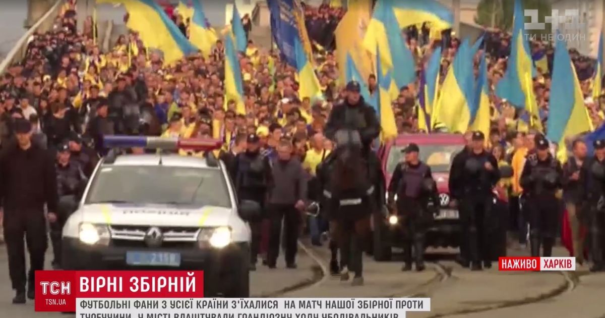 Перед важным матчем сборной Украины в Харькове состоялось многолюдное шествие фанатов
