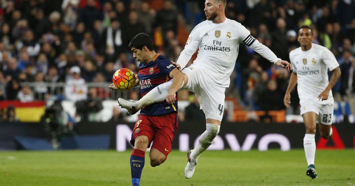 Серхио Рамос (в белом) в матче с "Барселоной" не сумел справиться с Луисом Суаресом. / © Reuters