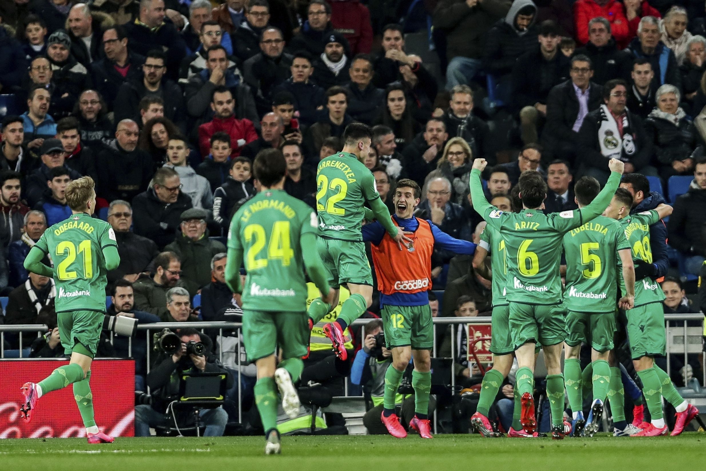 На 22-й минуте гости шокировали "Сантьяго Бернабеу" голом Мартина Эдегора. Норвежский полузащитник выступает в аренде за "Сосьедад", а права на него принадлежат именно "сливочным".