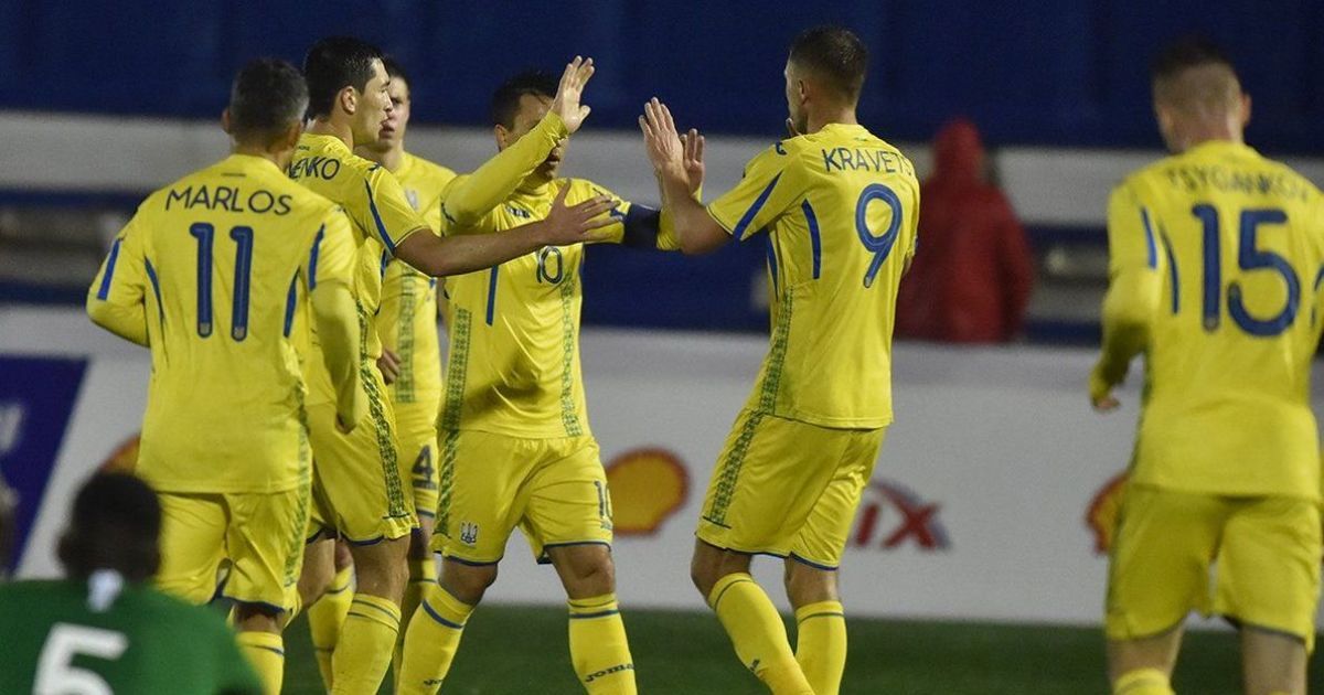 В первом тайме украинцы сильно давили на соперника и вышли вперед. Артем Кравец головой замкнул навес Евгения Коноплянки на 32-й минуте.