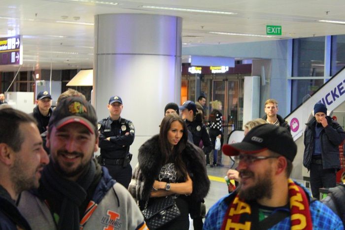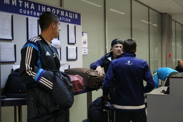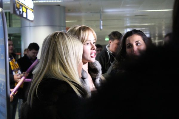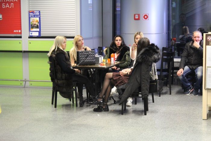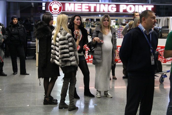 Жены игроков приехали рано утром в аэропорт. Снежана Гармаш, Мария Гусева, Виктория Хачериди и Маргарита Рыбалка. / © Проспорт