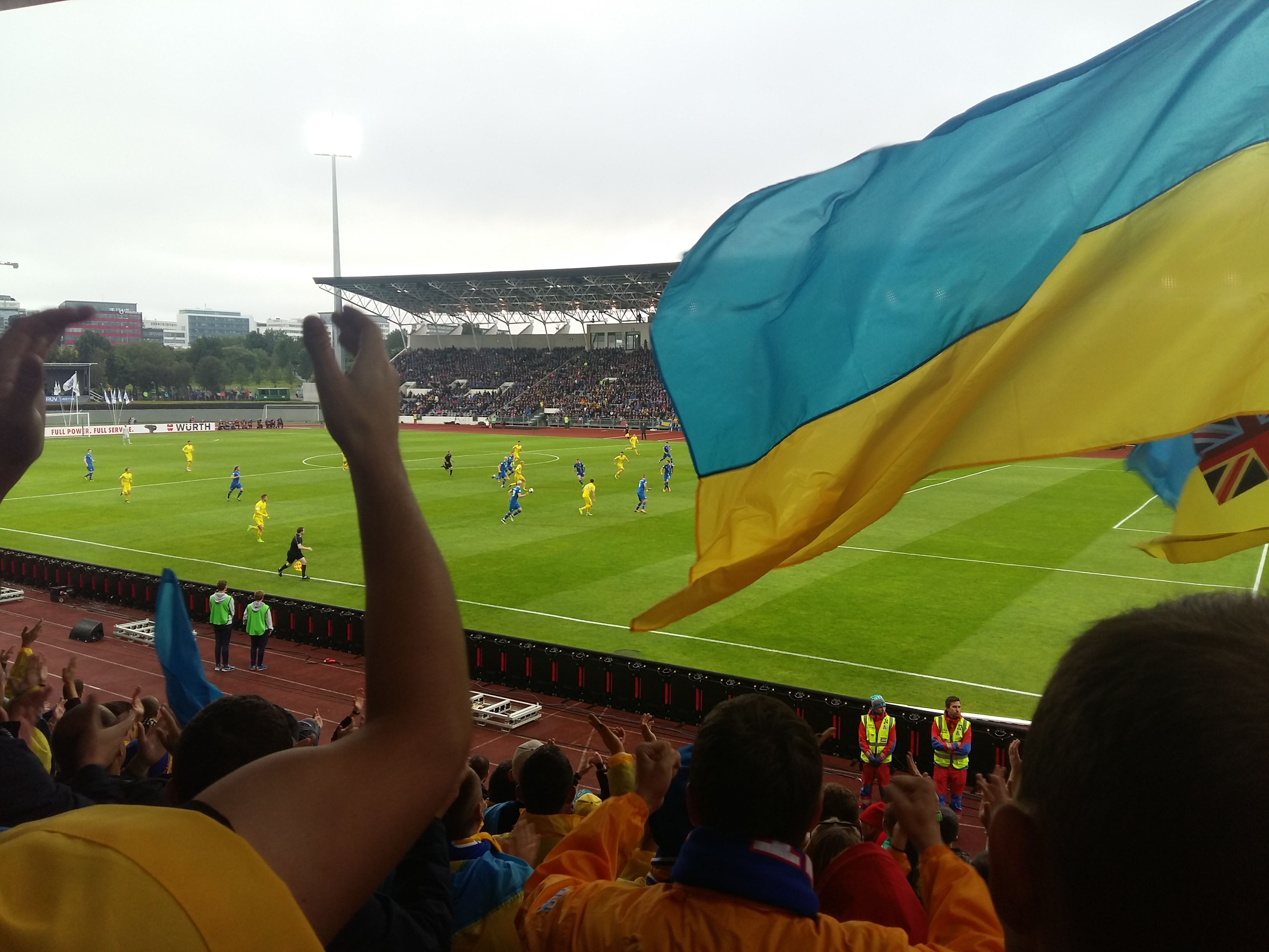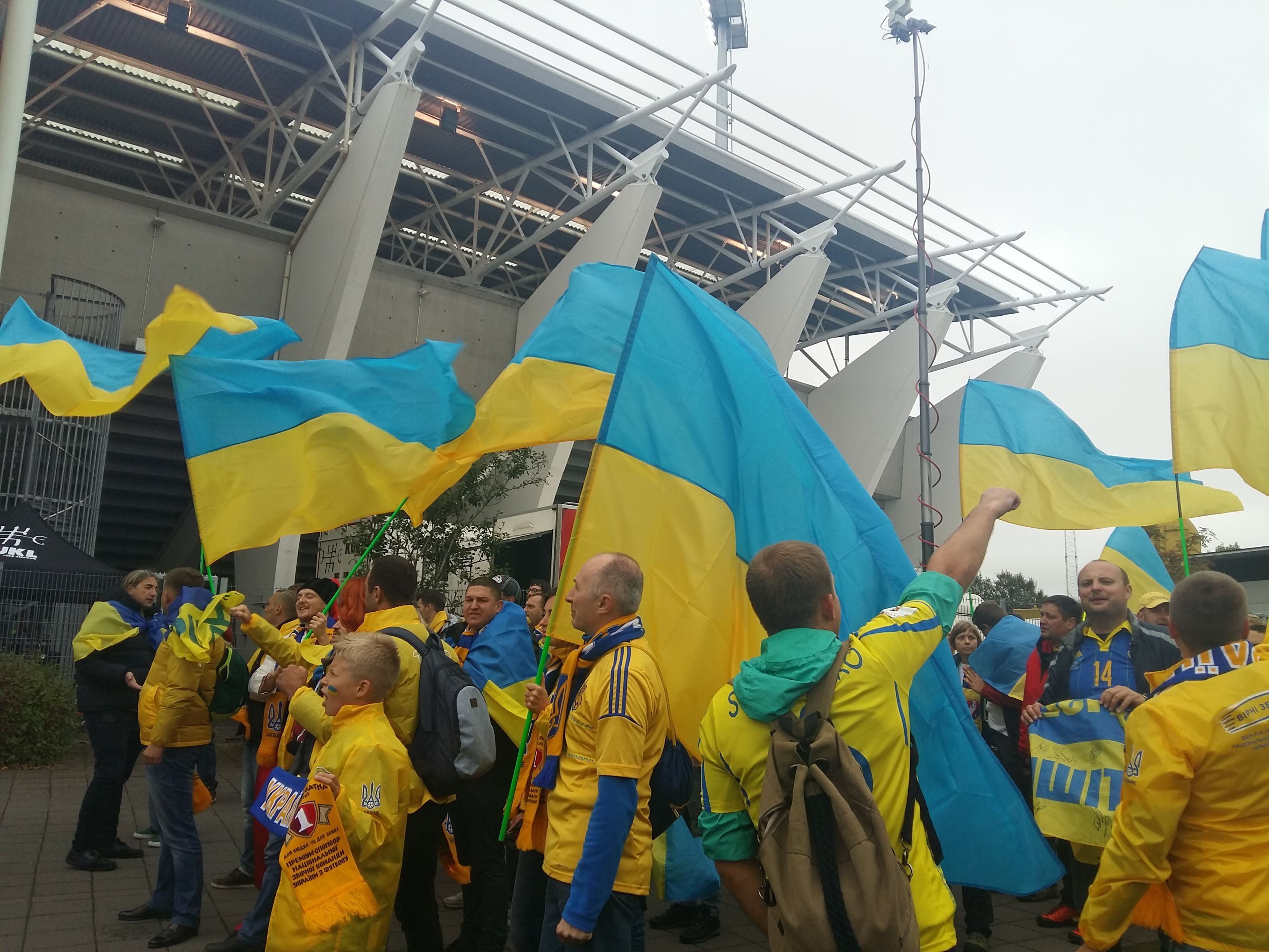 На самом же матче украинцы "рвали глотки", чтобы сборная слышала горячую поддержку. Поболеть за "сине-желтых" украинцы прилетели из Великобритании, Канады и даже были белорусы.