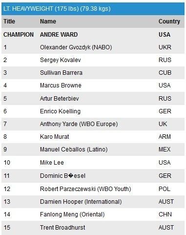 Следует отметить, что на данный момент чемпионом является американец Андре Уорд. Тем не менее, в обновленной версии рейтинга за сентябрь 2017 года, именно Гвоздик занимает первую позицию.