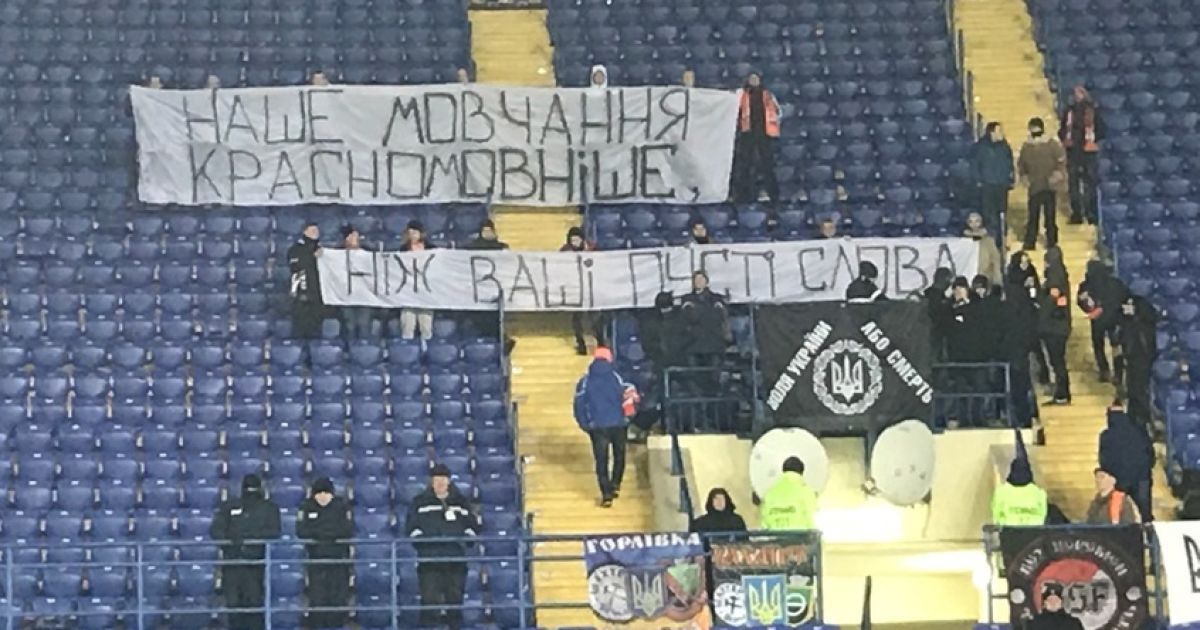 Как сообщает footboom.kz почти весь матч болельщики стояли молча, не скандируя привычные речевки в поддержку своей команды. На самом баннере было написано: наше молчание красноречивее, чем ваши пустые слова.