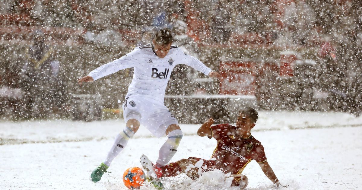 В матче МЛС футболист пытался остановить соперника снежком