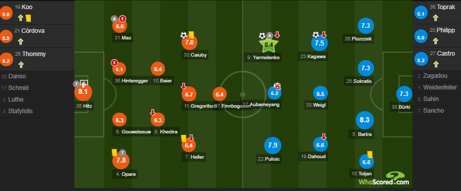 Украинского футболиста дортмундской "Боруссии" Андрея Ярмоленко признали лучшим игроком матча 7-го тура чемпионата Германии против "Аугсбурга".