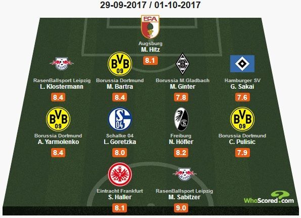 Кроме Ярмоленко среди игроков "Боруссии" в сборной тура оказались также защитник Марк Бартра и полузащитник Кристиан Пулишич.
