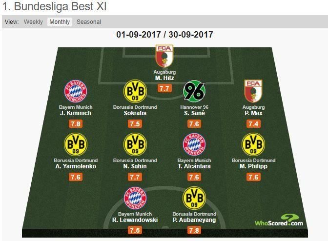 Статистический портал Whoscored внес нашего соотечественника в 11 лучших игроков, куда кроме Ярмоленко еще вошли его четыре партнера по команде - Сократис Папастатопулос, Максимилиан Филипп, Нури Шахин и Пьер-Эмерик Обамеянг.