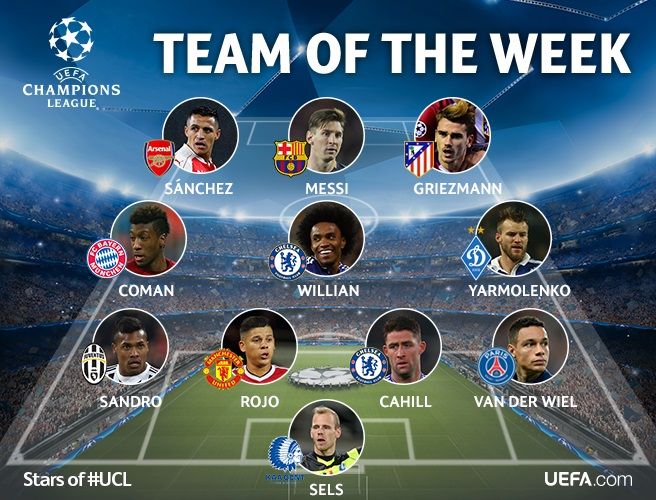 УЕФА определил лучших футболистов очередного тура групповой стадии турнира.