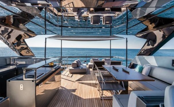 Интересен тот факт, что длина этой яхты составляет 29 метров, в то время как внутри есть: огромная столовая, коктейль-бар, спальня с кроватью на двоих, частная лаунж-комната, куда входят встроенные системы аудио и караоке.