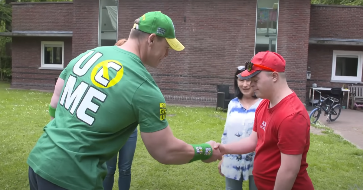 Легендарный американский рестлер WWE Джон Сина встретился с парнем Михаилом из Мариуполя, который был вынужден покинуть дом из-за войны.